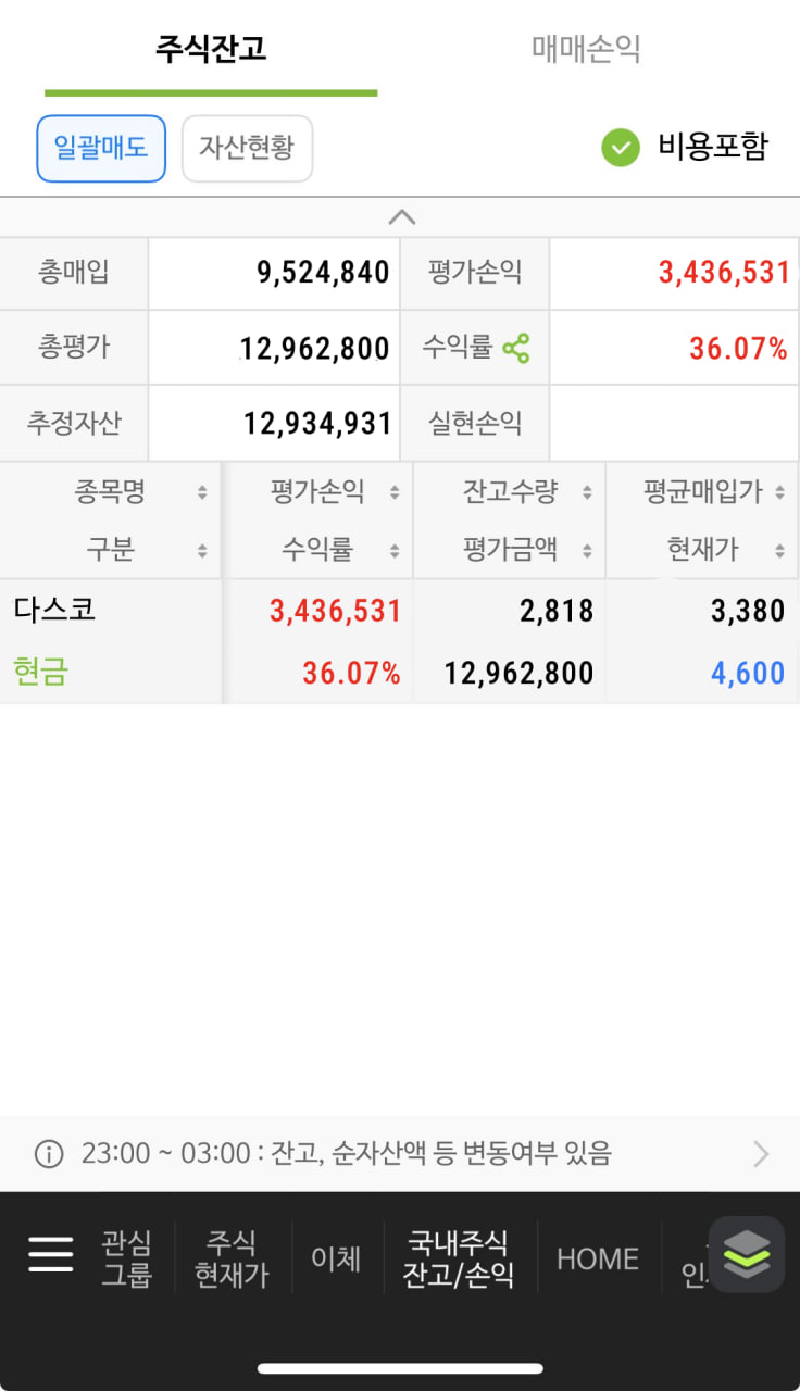 퀀트 개인 운용 성과 및 회원님이 보내주신 실제 계좌 내역입니다.