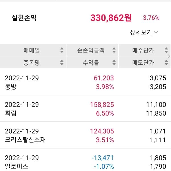 리딩에 따라 매수 매도를 하였습니다
