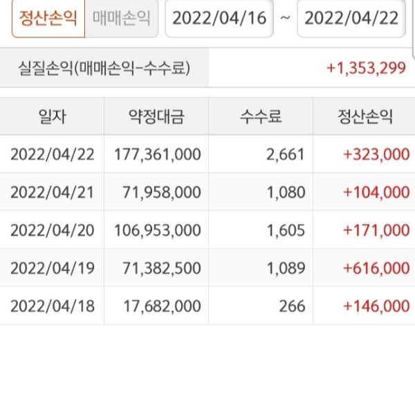 4월셋째주 수익