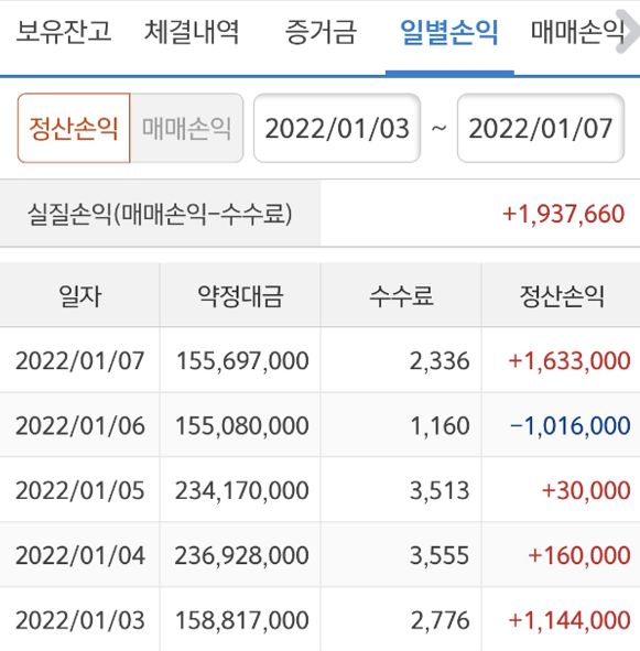 1월3일~1월7일 수익인증