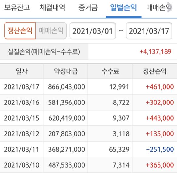 올 3월 1일부터 오늘까지 수익입니다^^