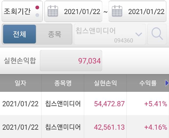 몇일 기다리니 마이너스에서 바로 수익으로 올라오는~^^ 믿고 기다려서 수익봤네요 감사합니다