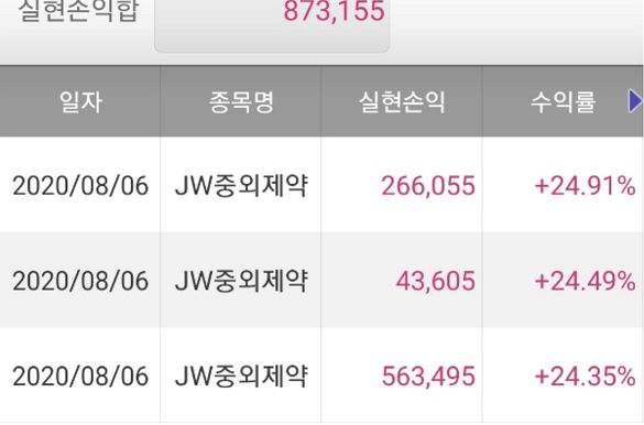 jw중외제약 수익