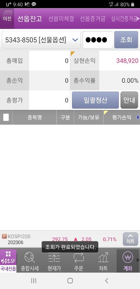 퀀트 개인 운용 성과 및 회원님이 보내주신 실제 계좌 내역입니다.