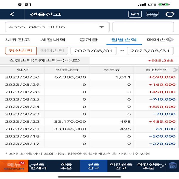 퀀트 개인 운용 성과 및 회원님이 보내주신 실제 계좌 내역입니다.
