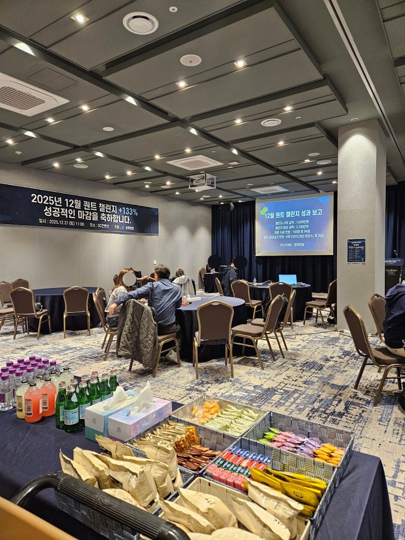 바로 [12월 퀀트 챌린지 +133% 성공 마감]을 기념하고, 한 달간의 여정을 함께 돌아보는 복기 및 축하 세션이 진행되었습니다.