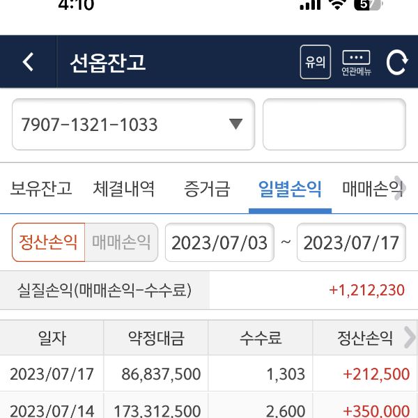 퀀트 개인 운용 성과 및 회원님이 보내주신 실제 계좌 내역입니다.