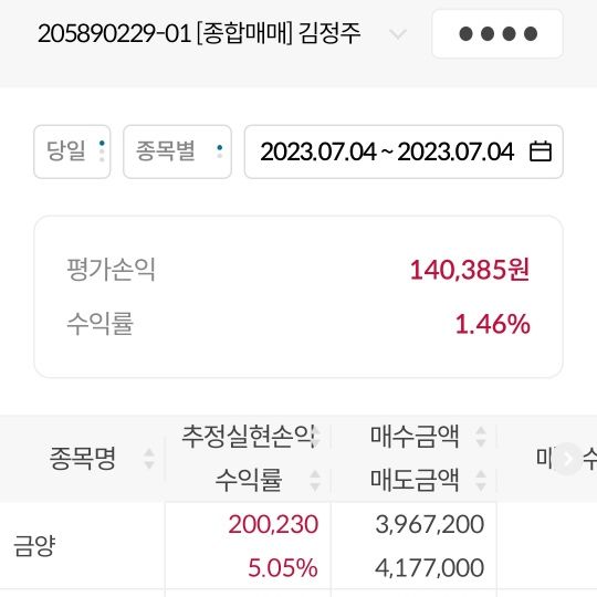 금양 수익 인증