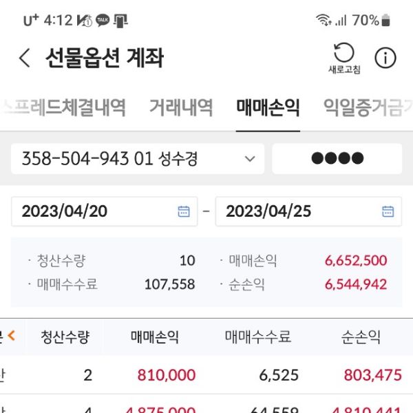 퀀트 개인 운용 성과 및 회원님이 보내주신 실제 계좌 내역입니다.