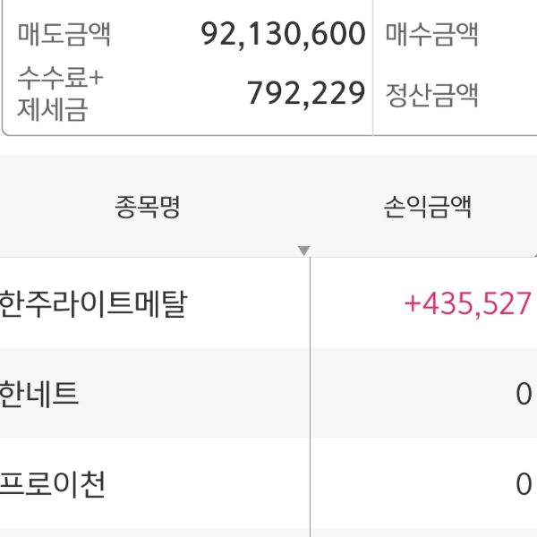 한주라이프 오늘 팔았네요. 수익감사합니다