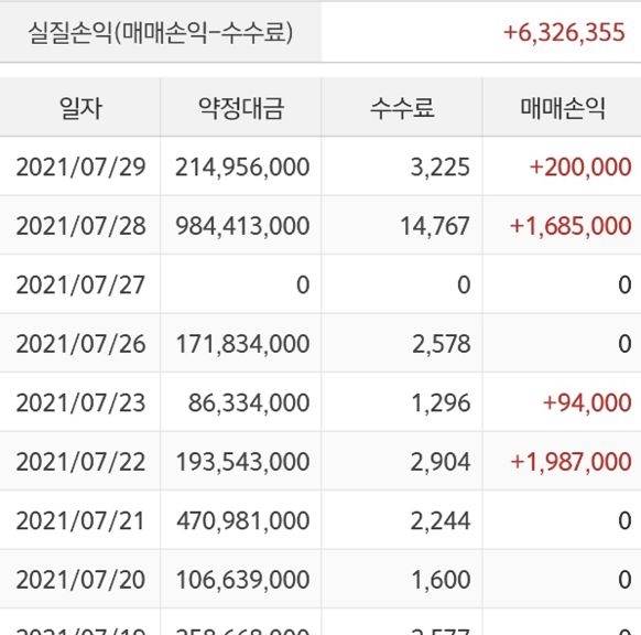 7월 한달간 선물 수익