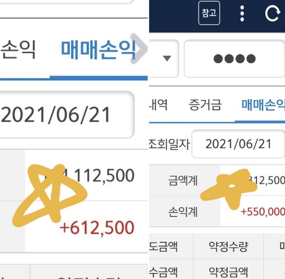6월21일 주간+야간장 수익