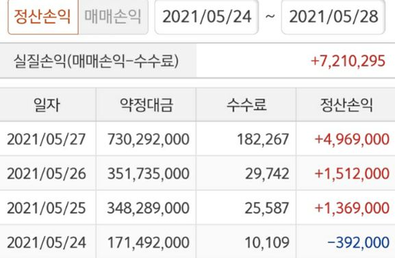 이번주 수익입니다~~~