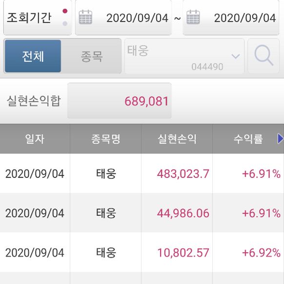 하락장후에 오랜만에 수익인증 입니다