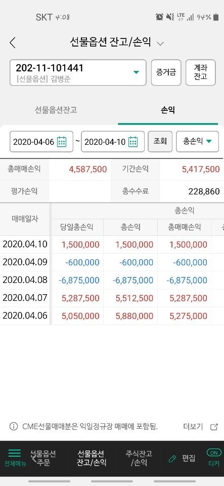퀀트 개인 운용 성과 및 회원님이 보내주신 실제 계좌 내역입니다.