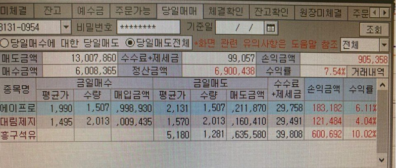퀀트 개인 운용 성과 및 회원님이 보내주신 실제 계좌 내역입니다.