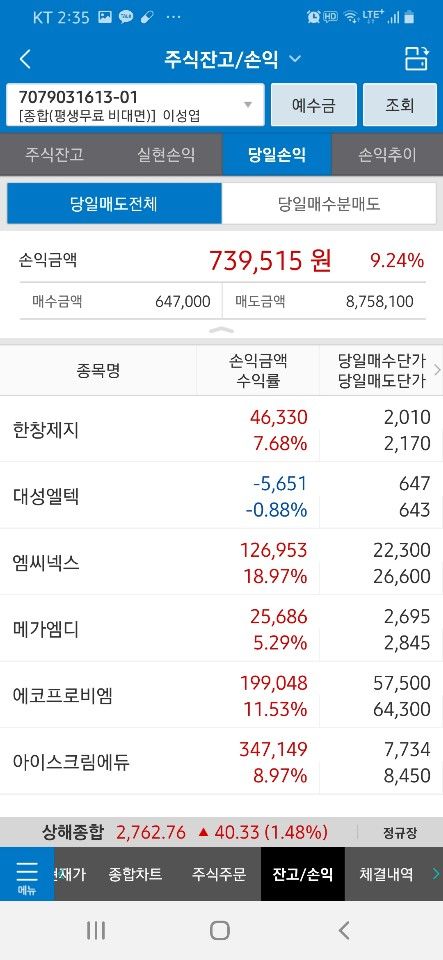 퀀트 개인 운용 성과 및 회원님이 보내주신 실제 계좌 내역입니다.