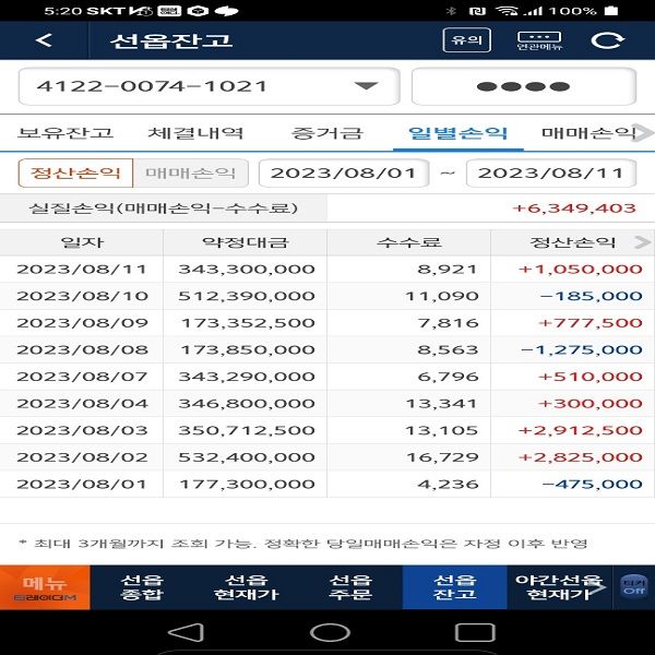 퀀트 개인 운용 성과 및 회원님이 보내주신 실제 계좌 내역입니다.